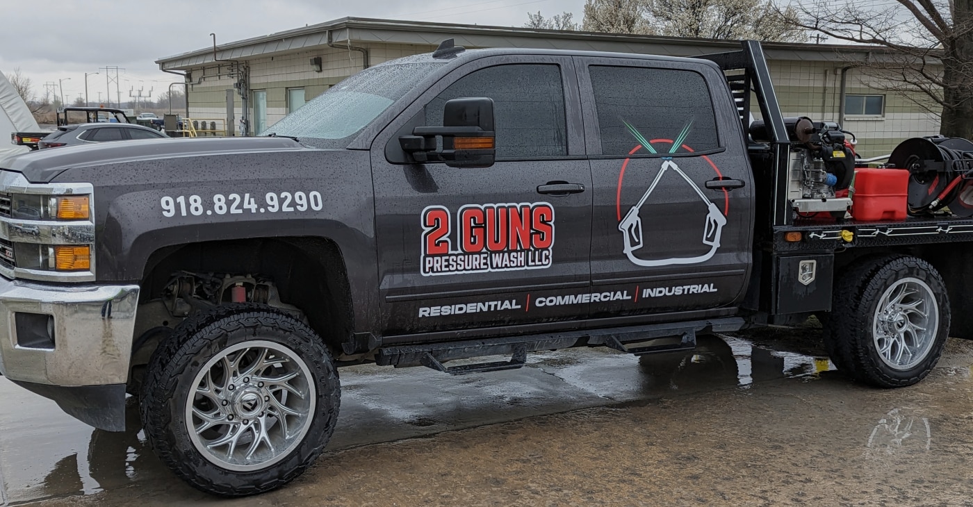 2 Guns Pressure Wash is a professional and reliable cleaning company dedicated to providing top-notch services to our clients in the Pryor, OK, area. Our team of experienced and trained cleaners is ready to tackle any job, big or small. Our services include fleet washing, power washing, concrete cleaning, pressure cleaning, and equipment cleaning. We use high-quality cleaning products and state-of-the-art equipment to ensure that your space is thoroughly cleaned and disinfected. We understand that life can get busy, so we offer flexible scheduling to fit your needs. Whether you need soft washing or fence cleaning services, we've got you covered.